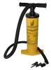 This pump delivers a continuous stream of air on both the up and down strokes. It inflates and deflates, by simply changing the hose connection. Ideal for tubes, airbeds, boats, toys and other inflatables. Four universal valve fittings are included. The accordion style hose stretches to 5' long and interlocks to the pump, so that it doesn't fall off while you're pumping. The handle and foot plate are ergonomically designed for your comfort. It's manufactured from lightweight, non-corrosive plastic and disassembles easily for inspection or maintenance. Capacity is approximately 68 gallons/60 strokes.