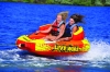 With a variety of different riding options, AIRHEAD LIVE WIRE comes alive with energy on the water! Featuring dual tow points, you can ride sitting down using the comfy backrest and large roomy cockpit, or tow it the opposite direction for a kneeling chariot style ride you'll never forget. A multitude of comfortable foam filled nylon handles with neoprene knuckle guards facilitate different riding positions. The fun graphics make this uniquely shaped towable dressed to impress.