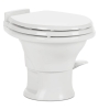 311 Short Gravity flush ceramic round Toilet with wood slow-close seat, foot pedal operation. The Dometic 311 Ceramic Low Profile Toilet is the best of all worlds. A value-priced toilet, it features revolutionary PowerFlush technology and a full-size ceramic bowl to deliver the comfort and beauty of a residential toilet. Motorhome builders love this Dometic toilet for the industry-best quick, two-bolt installation. Dealers love offering a ceramic toilet at a price previously seen only for cheaper, flimsier plastic models. You'll love everything about this lightweight toilet. Best in class for gravity flush toilets.Dimensions product depth 19 " Dimensions product height 14.25 " Dimensions product width 14.875 "