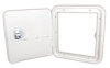 Direct OEM replacement. UV & impact resistant. Resistant to road salts & acids. Key lock. Polar white. Paintable. Cutout dim: 6-7/8" H x 6-3/8" W. Outside dim: 8-1/2" H x 8" W.