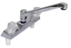8" deck faucet with 8" D-spout, chrome with clear handles and aerator.